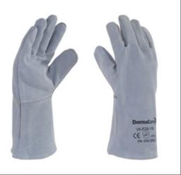 Guante para soldador en carnaza de res curtida al cromo y doble engrase, tratado en base de aceites para mayor duración y flexibilidad, 14” pulgadas de largo, diseño tipo americano, con forro interior acojinado.